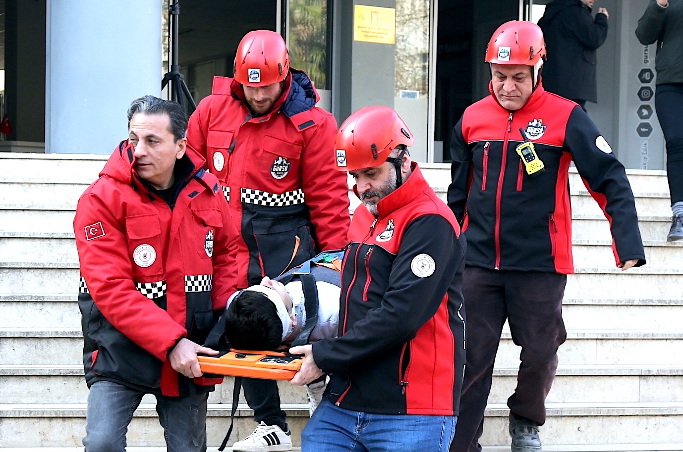 Gürsu Belediye personeli, düzenlenen deprem ve yangın tatbikatında olası doğal afetlere hazırlık yaptı.