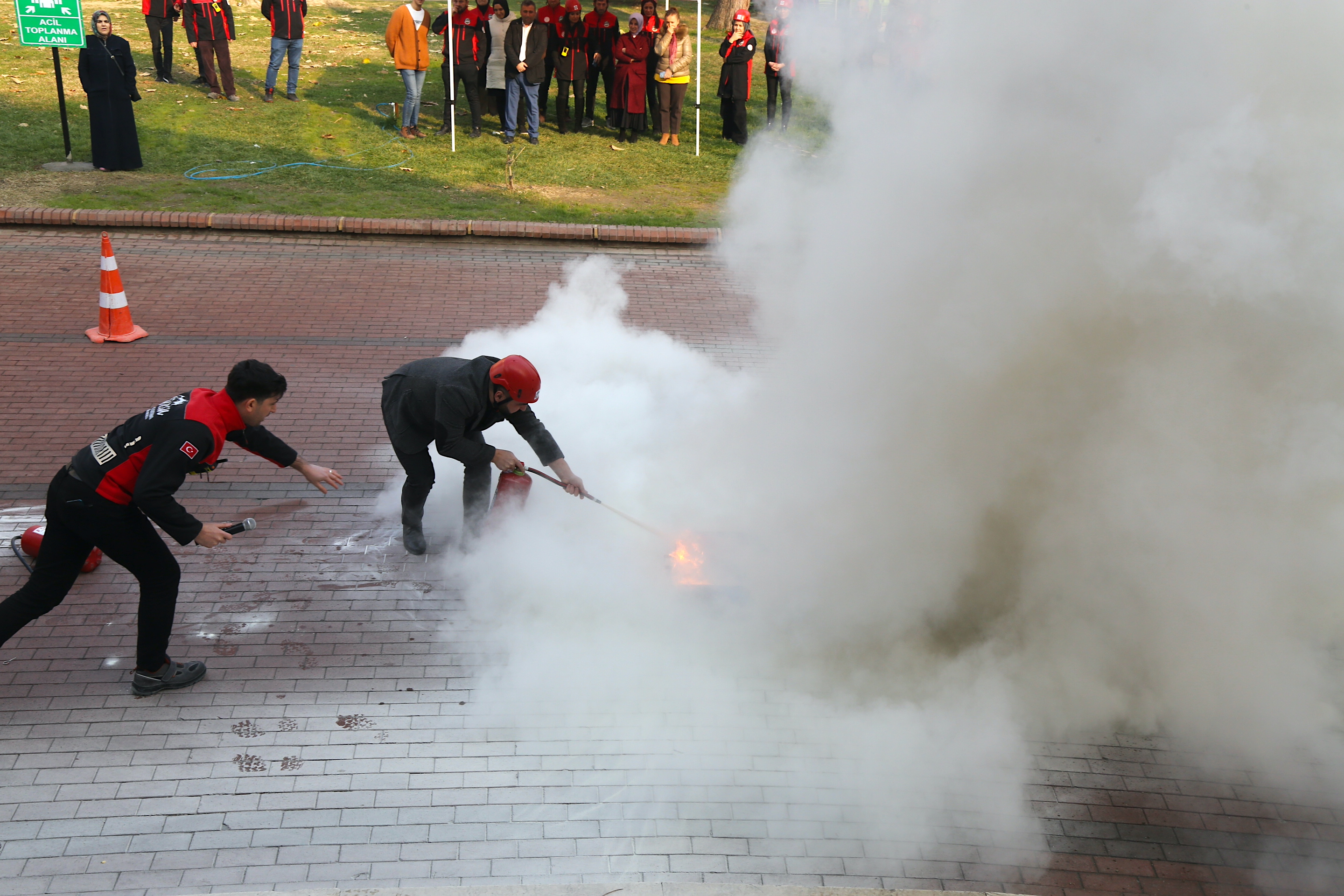 Tatbikat kapsamında yönlendirmeleri uygulayarak binadan çıkan Başkan Işık ve personeller, belediye hizmet binası önünde gerçekleştirilen yangın söndürme tatbikatına da uygulamalı olarak katıldı. Tatbikat kapsamında, yaralı bir kişi de sedyeyle binadan çıkarıldı. Arama kurtarma faaliyetleri kapsamında yapılan uygulama örneği olarak, arama kurtarma ekibinden iki kişinin belediye hizmet binasının çatısından iple inerek açtıkları Türk bayrağının önünde çekilen toplu fotoğrafla tatbikat sonlandırıldı.